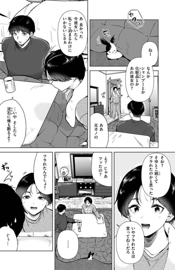 仕事帰りに幼馴染の家で一晩過ごすことになり、性欲が強すぎて元カノに振られた男の性癖を聞いてたらムラムラしてききしまい…